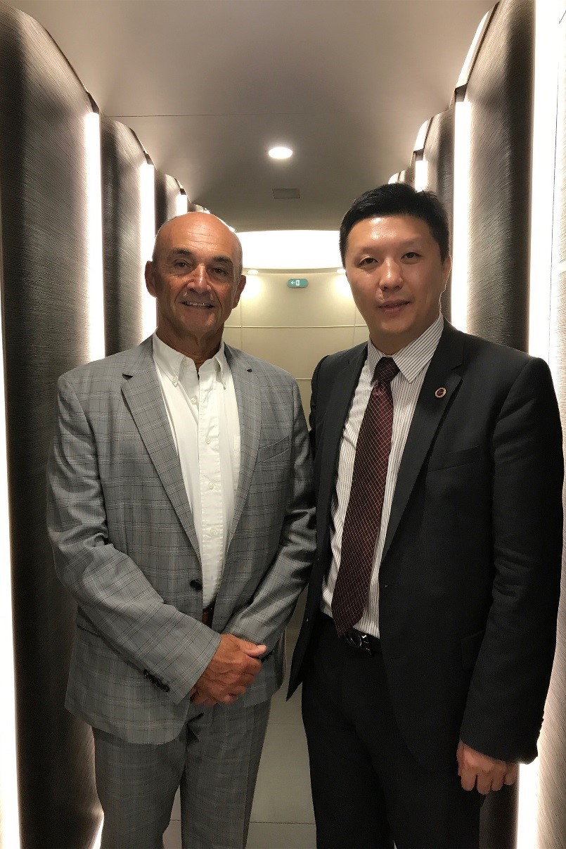 | 圖片說明 | 787夢想商務機設計師Jacques PIERRE JEAN先生與金鹿公務副總裁方新宇先生現身機上禪意走廊 |