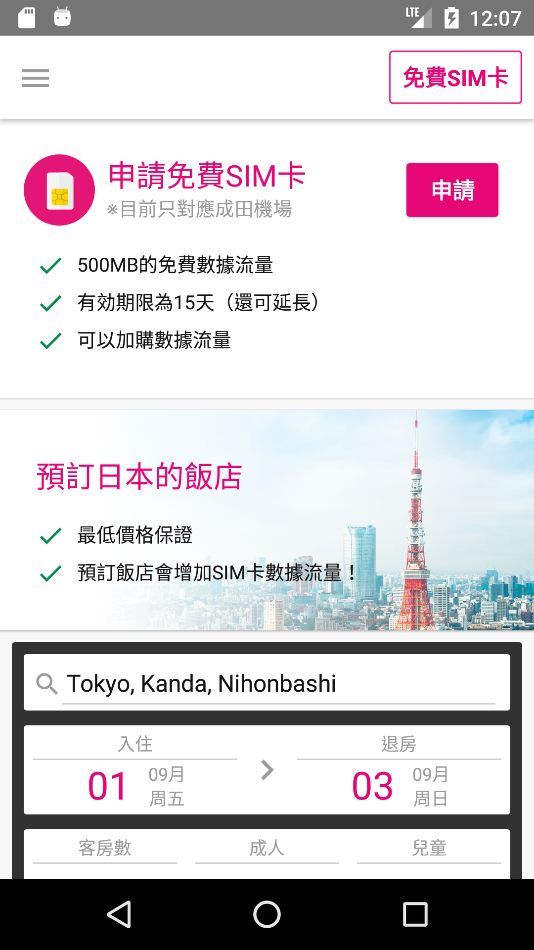 | 圖片說明 | 15天免費利用SIM卡 預訂飯店還可追加獲得數據流量 |