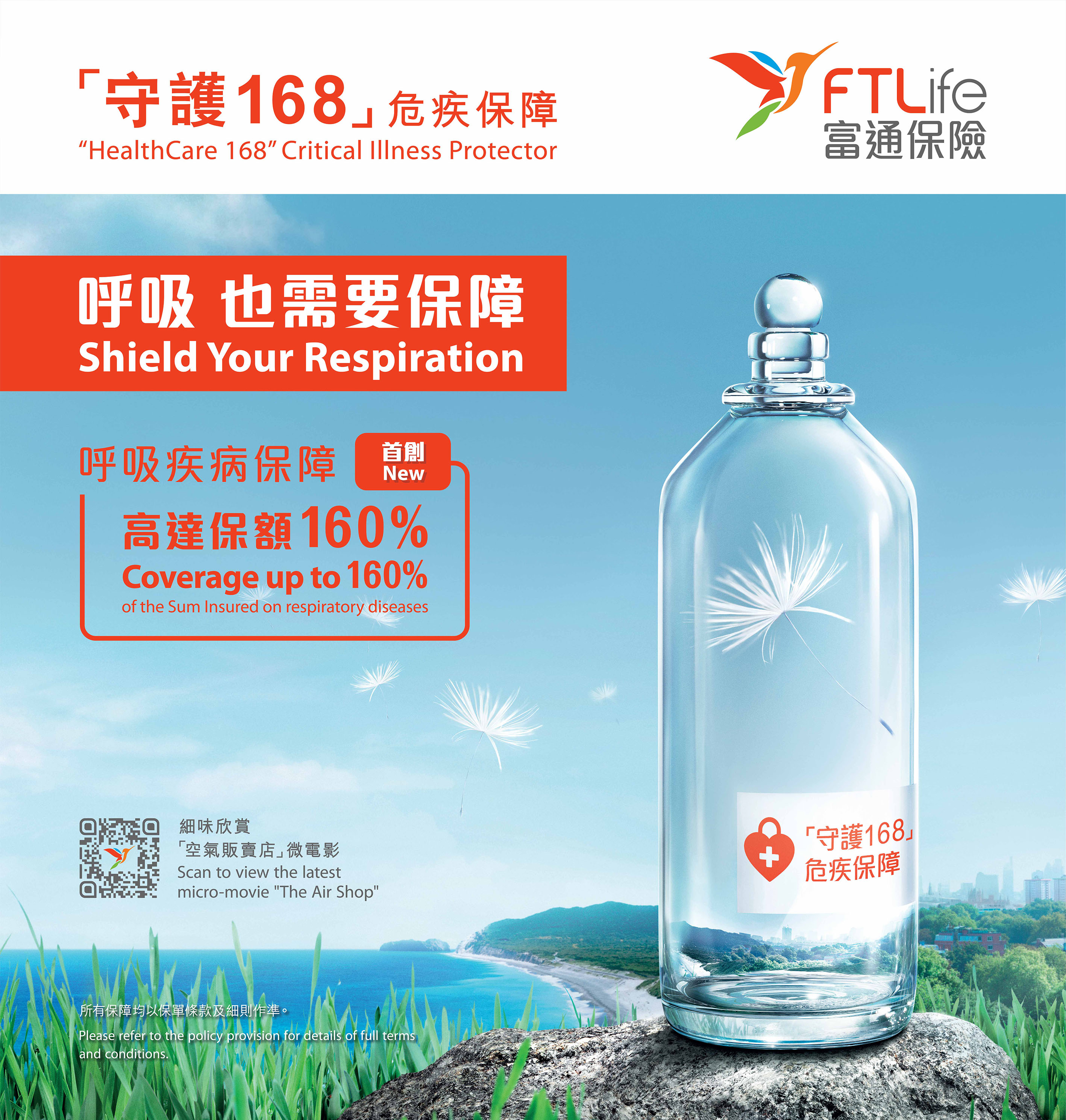 富通保險推出「守護168」危疾保障計劃 FTLife's HealthCare 168 Critical Illness Protector provides coverage against 168 illnesses with multiple protection for cancer, stroke and heart attack and requires only short waiting periods 富通保险推出“守护168”危疾保障计划 |