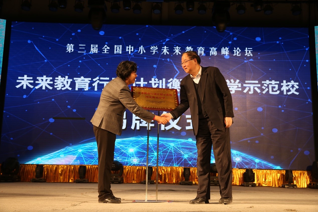 | 图片说明 | 清华大学校务委员会副主任、原党委副书记韩景阳与衡水中学校长张文茂为“未来教育行动计划衡水中学示范校”揭牌 |