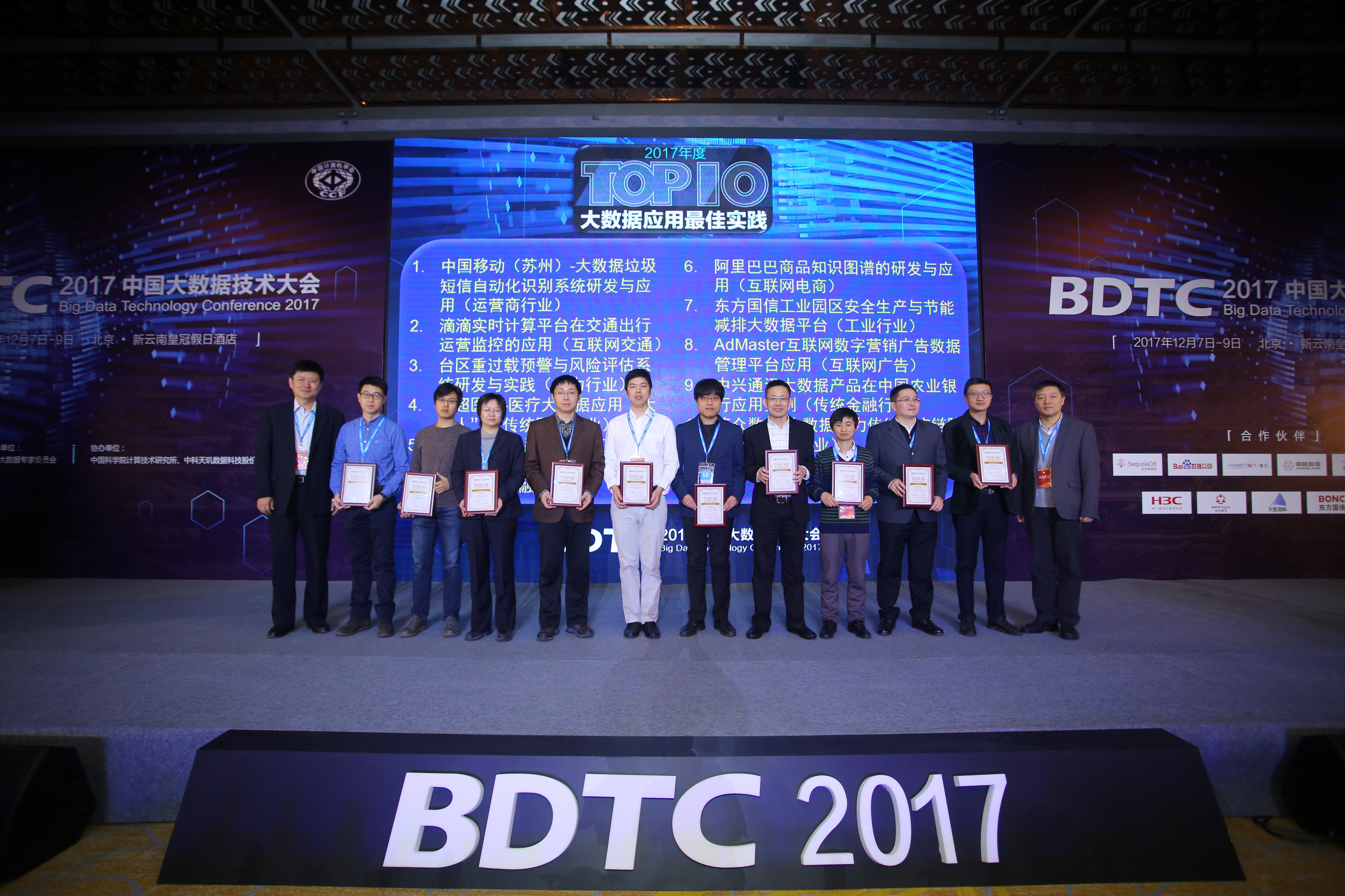 TOP10大数据应用最佳实践案例获奖企业代表合影