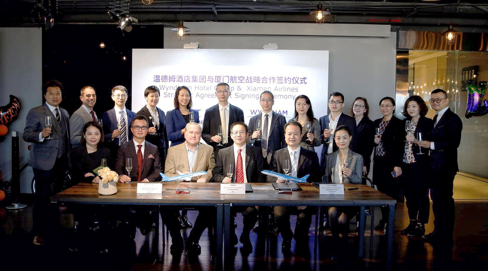 温德姆酒店集团与厦航高层管理人员共同庆祝签约成功