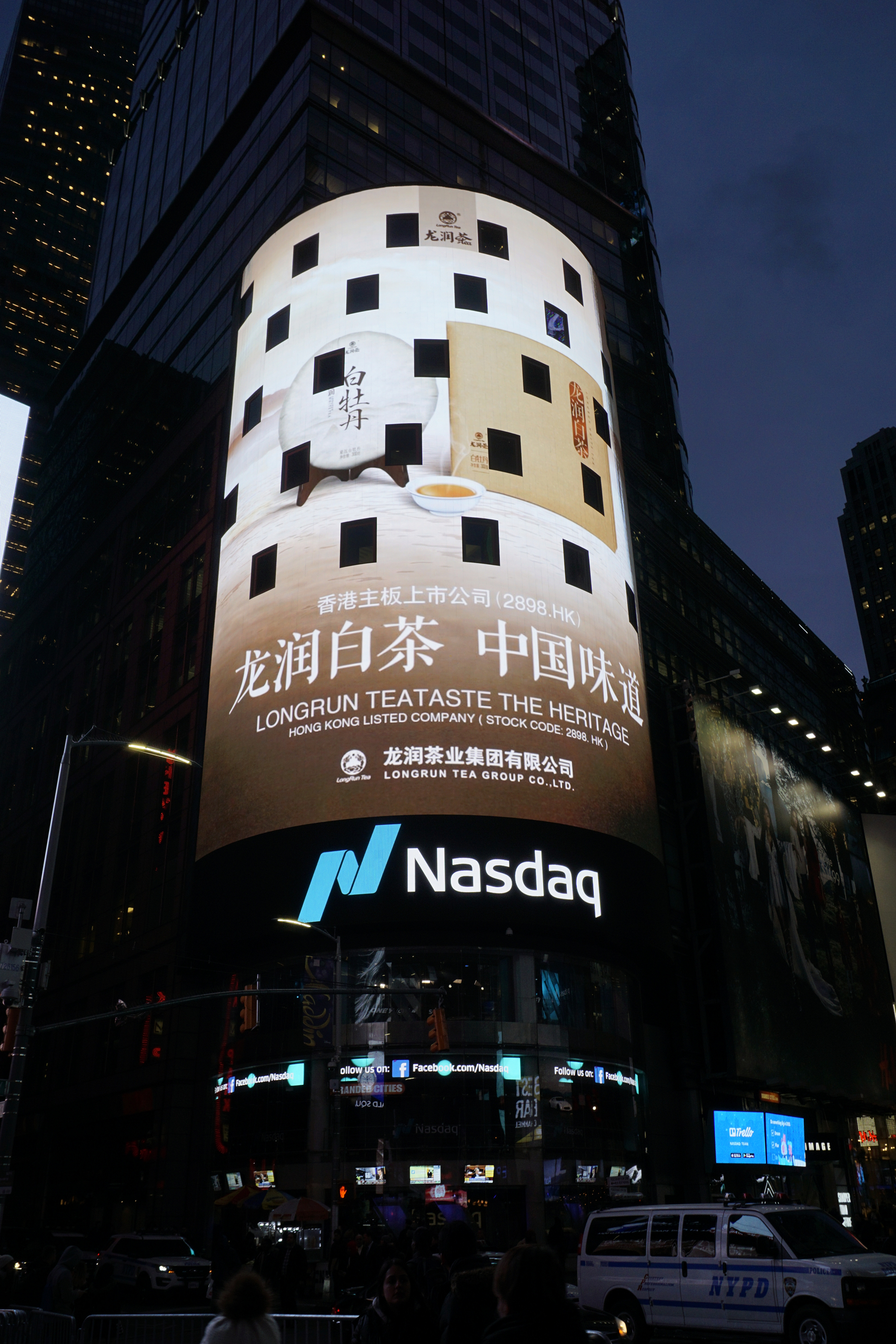 龙润白茶成功登陆纽约时代广场纳斯达克“世界第一屏”