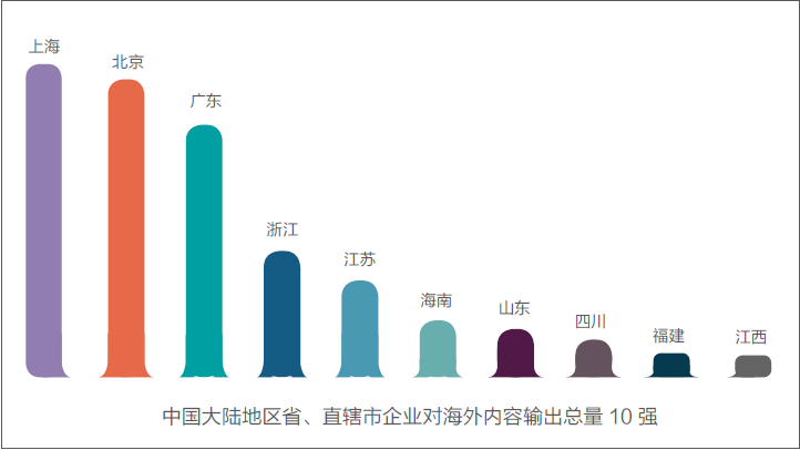 中国大陆地区省、直辖市企业对海外内容输出总量10强