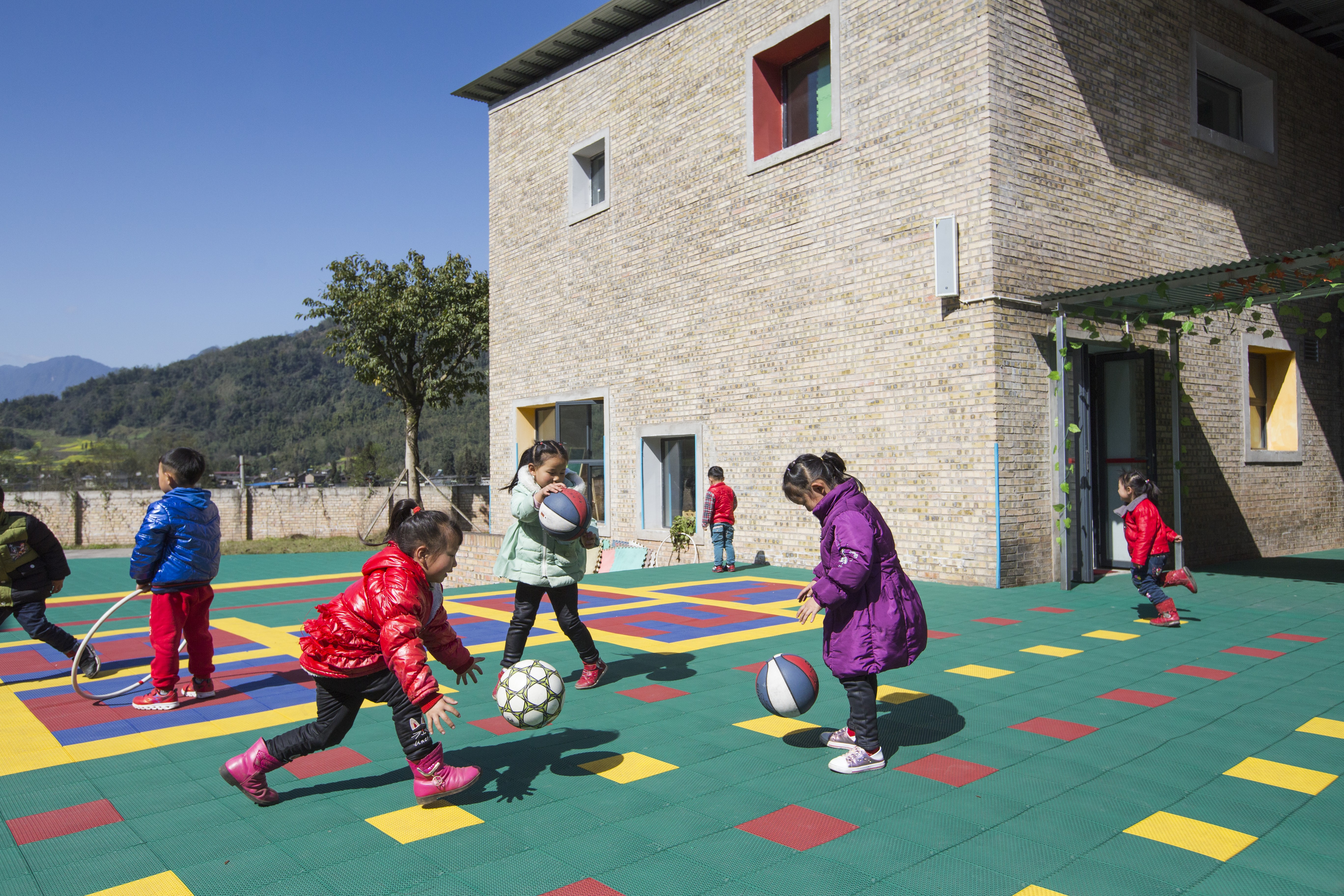 2018年3月8日上午,雅安市天泉县新场幼儿园,课间孩子们在做游戏