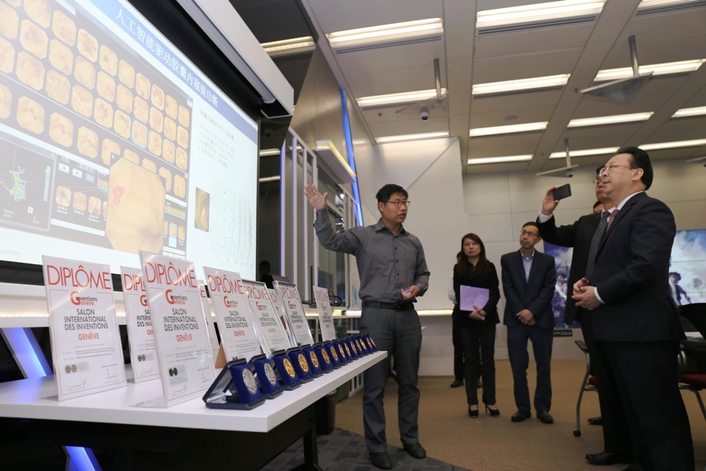 Dr Tan Tieniu, Deputy Director of the Central Government's Liaison Office in Hong Kong, visits ASTRI 中联办副主任谭铁牛到访应科院 赞扬该院的科研商品化成果 中聯辦副主任譚鐵牛到訪應科院 讚揚該院的科研商品化成果 |