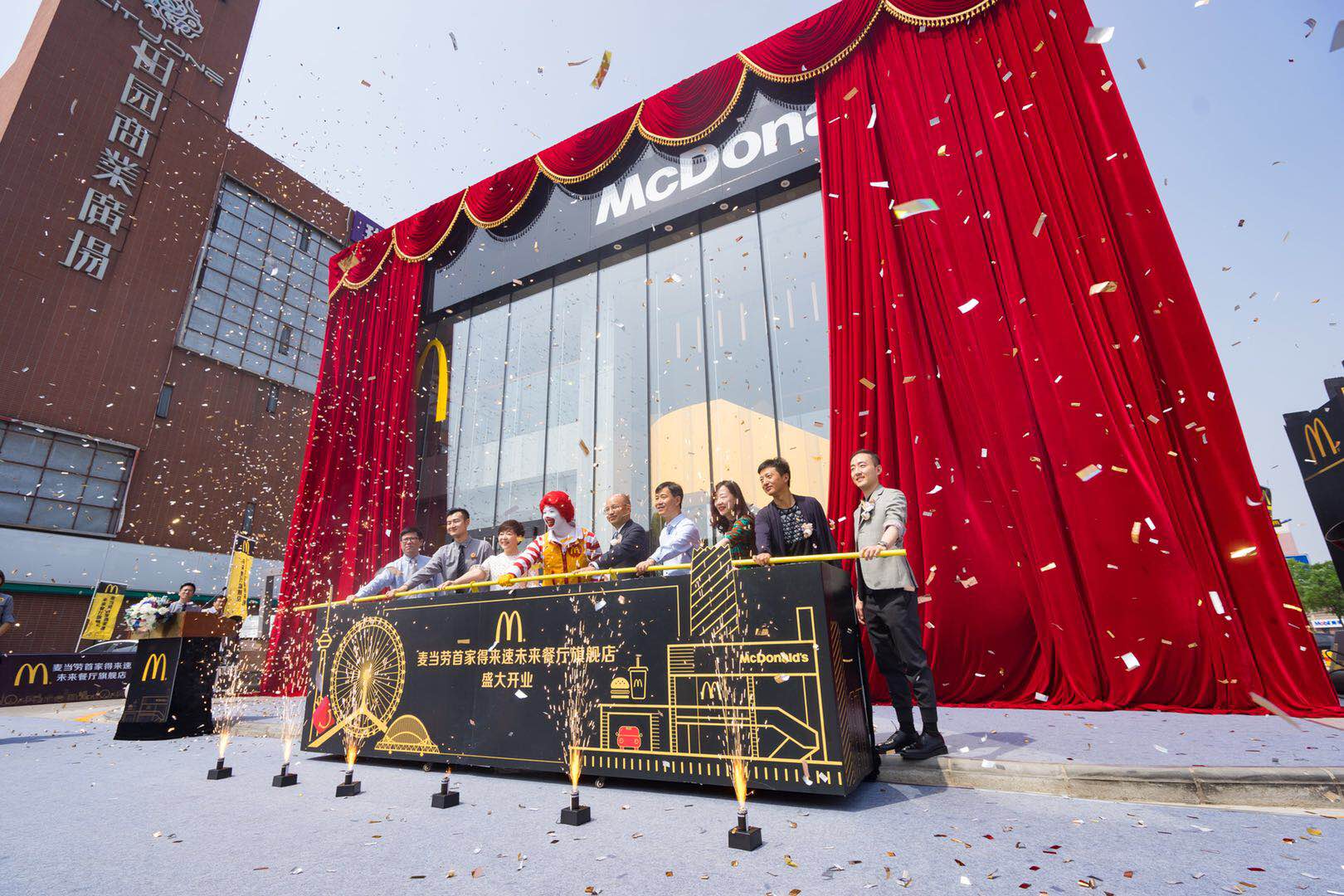 图片说明 麦当劳全国首家得来速未来餐厅旗舰店盛大开幕 左三-天津、山东南及河北省东南部区域高级总经理 刘蕊;右四-麦当劳中国快速增长区域总裁 吴辉