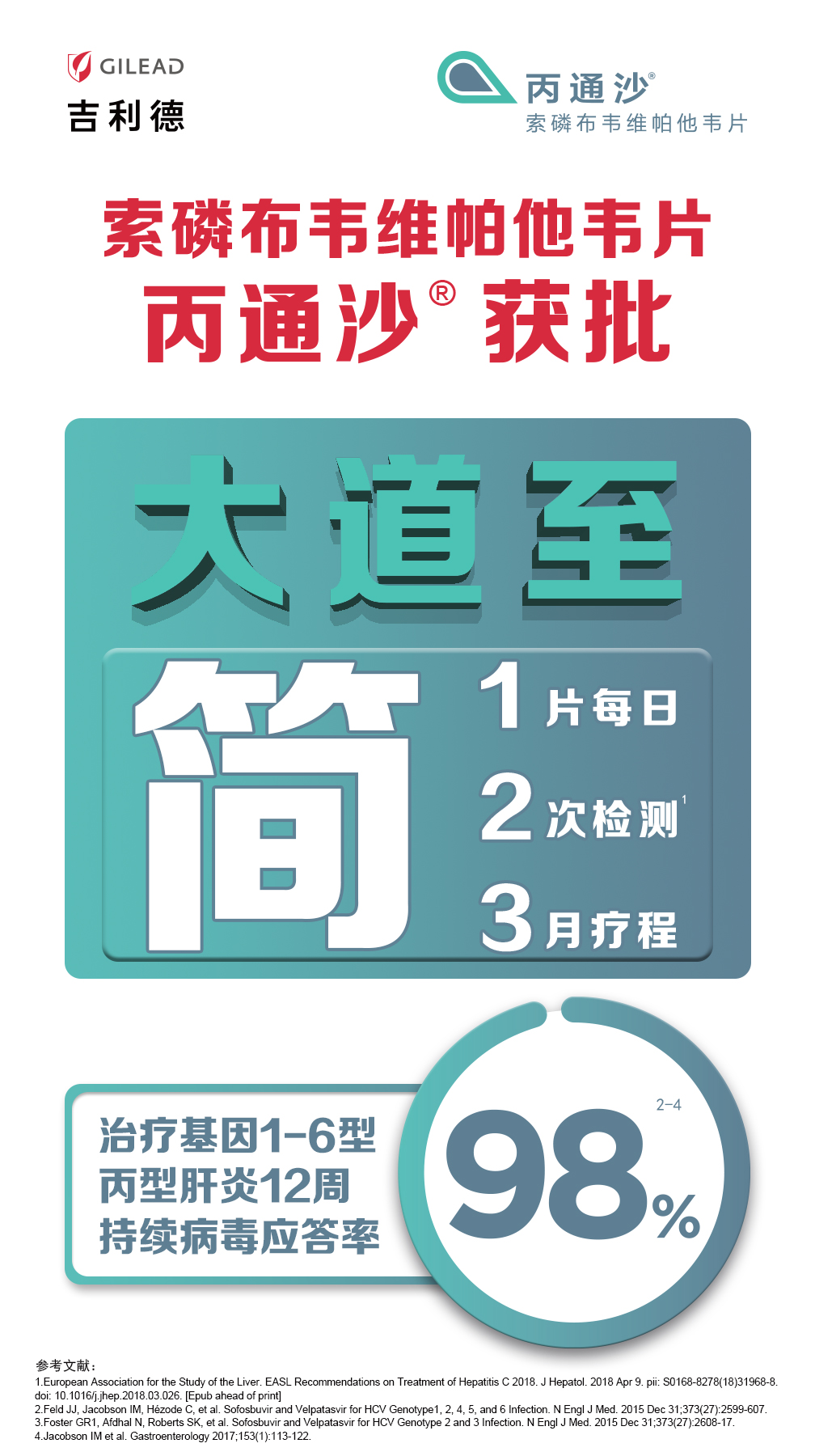吉利德丙肝新药 -- 丙通沙(R)(索磷布韦/维帕他韦)在中国获批