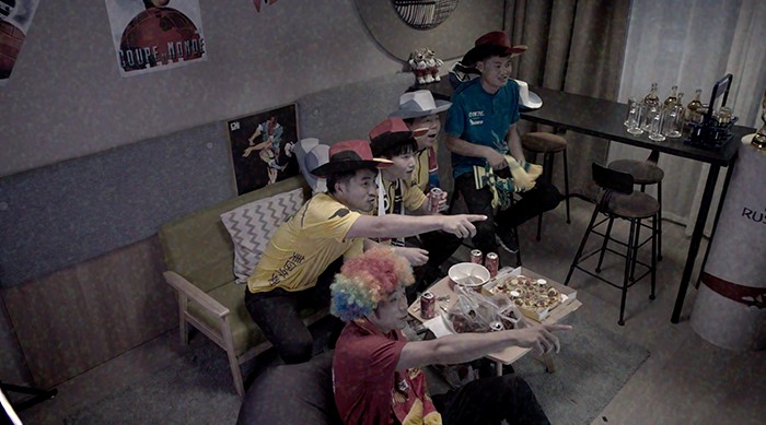 视频截图:外卖小哥在如家酒店-NEO客房内观看比赛