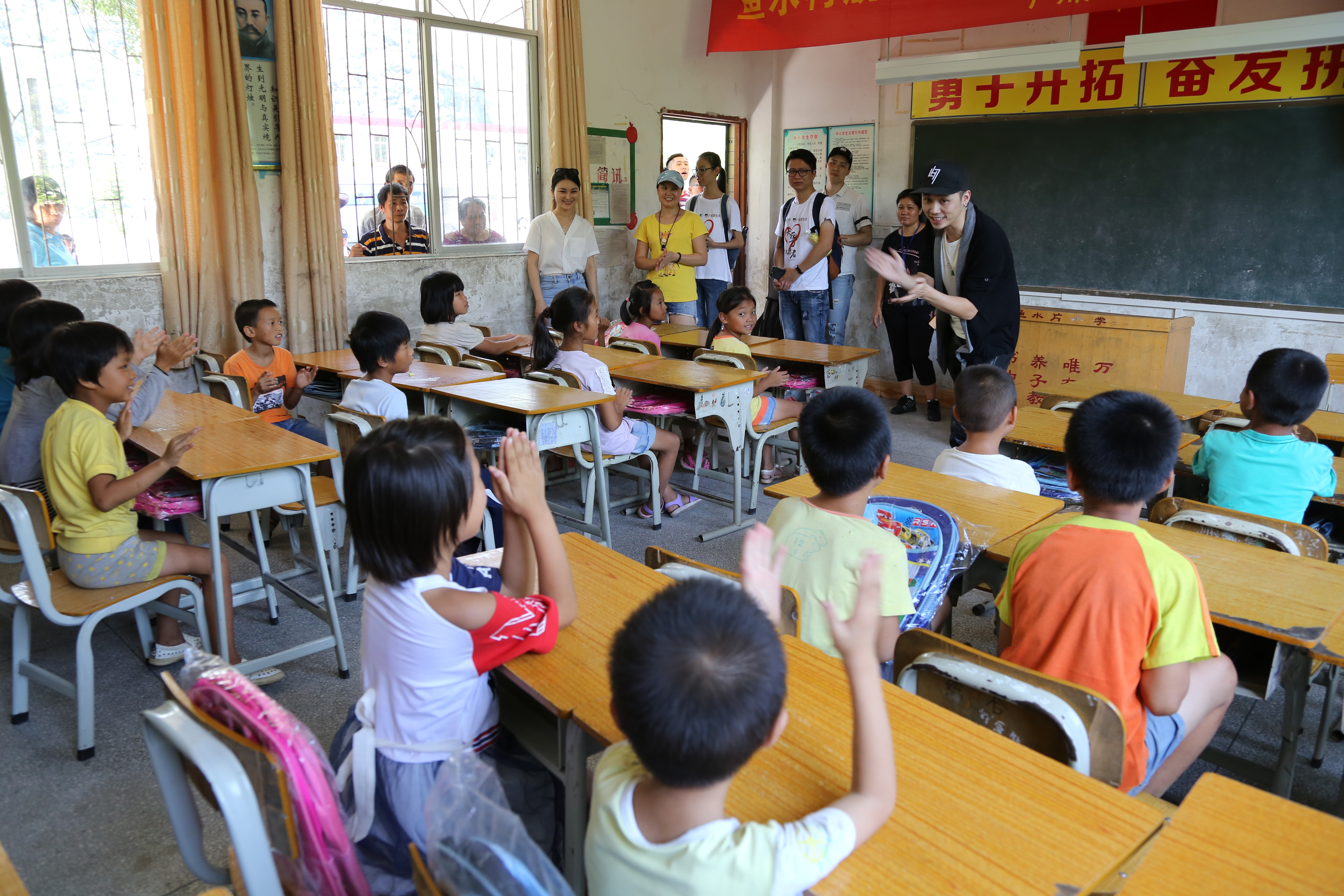 志愿者与学生互动音乐教学