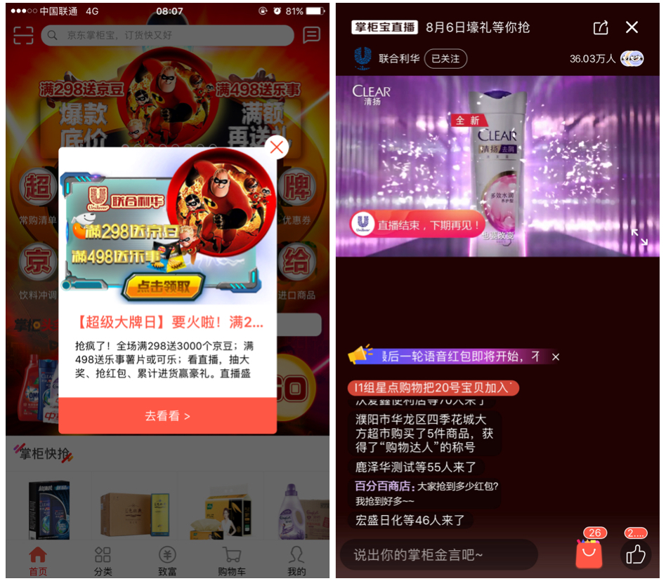 8月,联合利华在京东掌柜宝继续开展超级品牌日