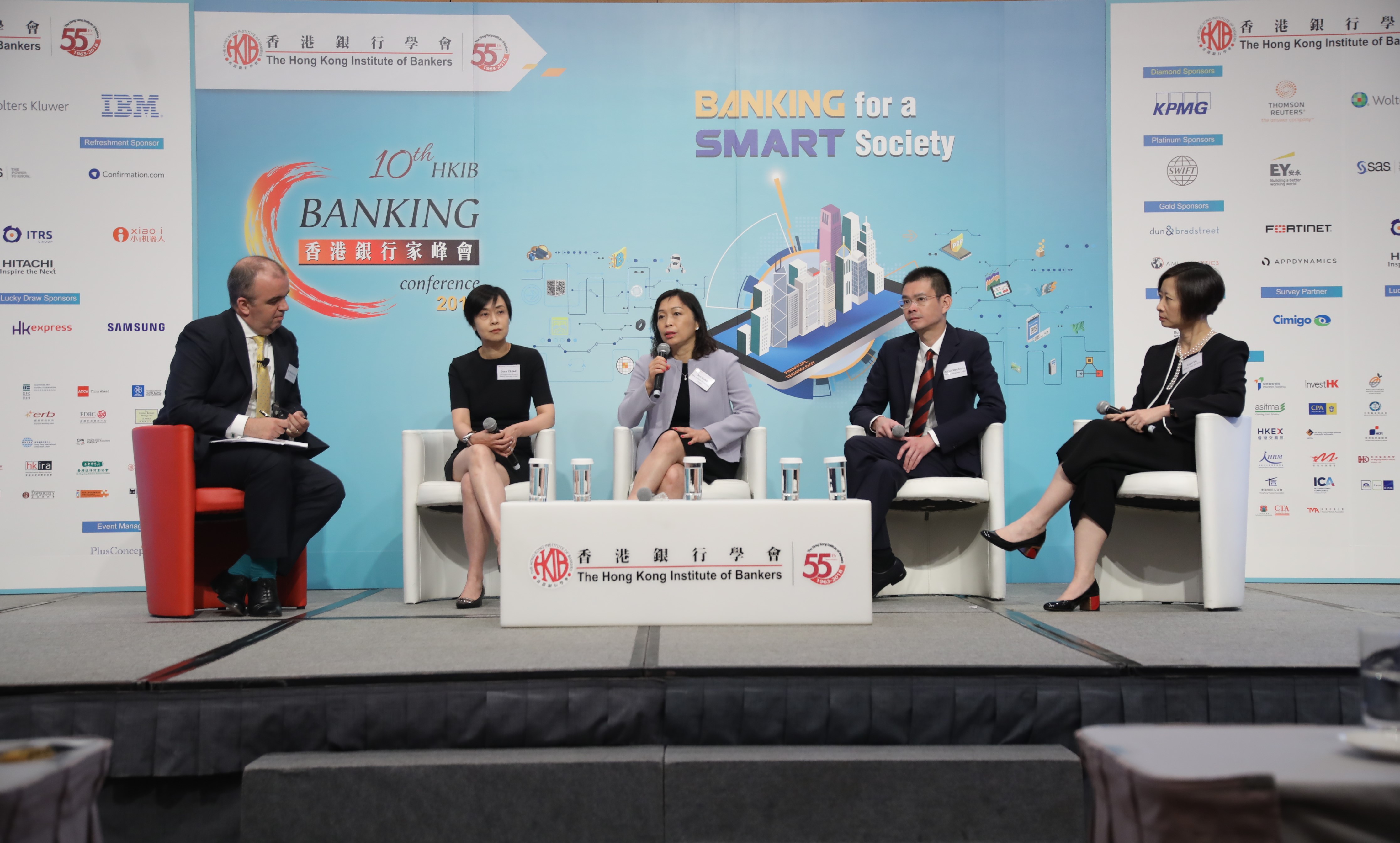 | Caption | (From the second on the left) Diana Cesar, Chief Executive, Hong Kong of The Hongkong and Shanghai Banking Corporation Limited; Ann Kung, Deputy Chief Executive of Bank of China (Hong Kong) Limited; Adrian Li Man-kiu, Executive Director & Deputy Chief Executive of The Bank of East Asia Limited and Angel Ng, Chief Executive Officer of Citi Hong Kong and Macau share their perspectives on how banks ought to reinvent their strategic roadmaps in the era of smart banking during the CEO Panel. |