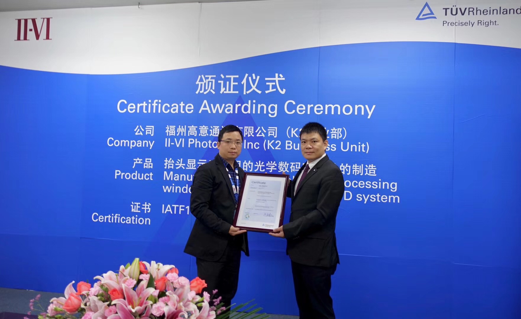 高意通讯顺利通过TUV莱茵IATF 16949:2016权威认证