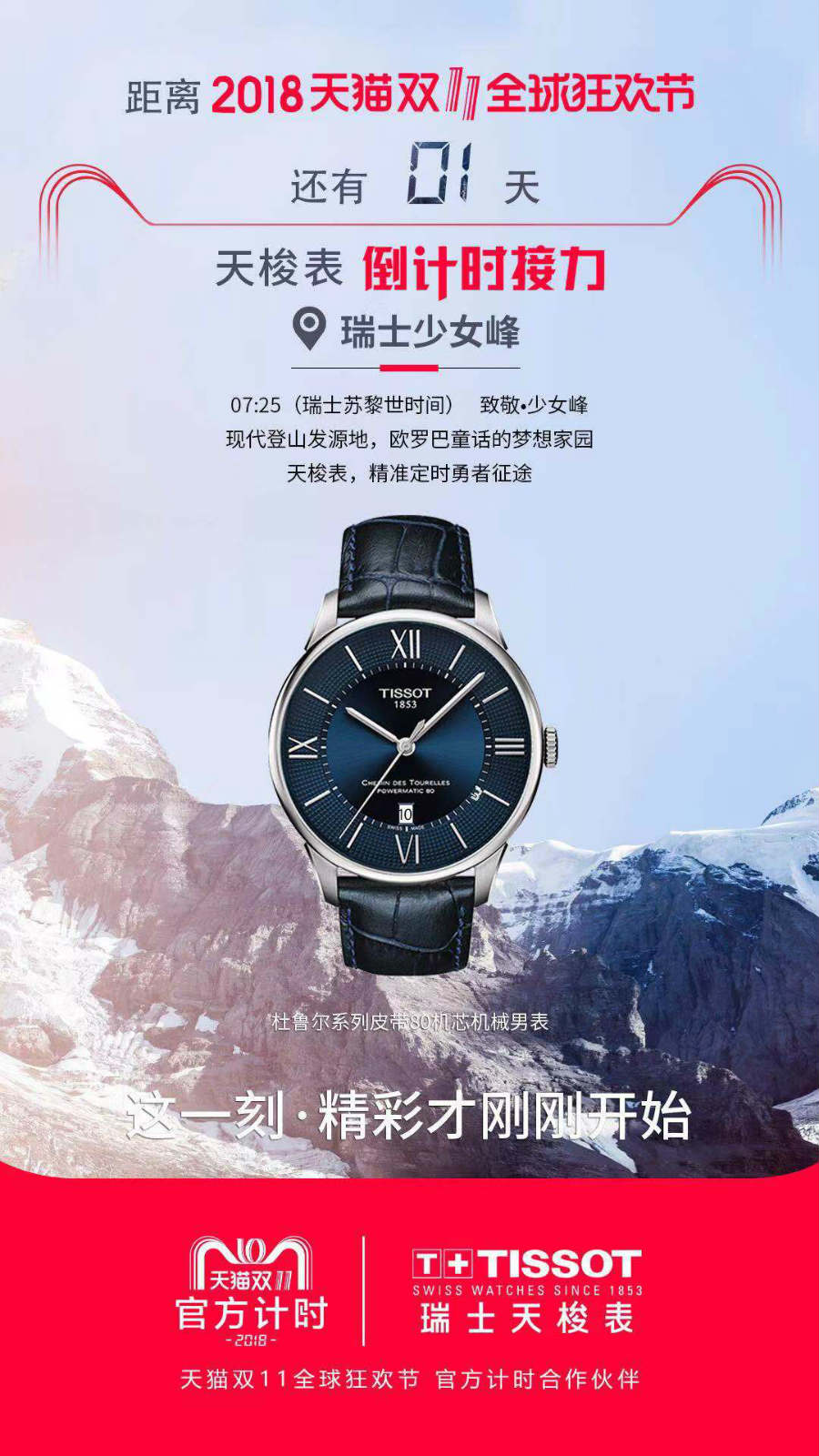 天梭表再度开启狂欢计时 以“壮美日出”倒数天猫双11十周年狂欢