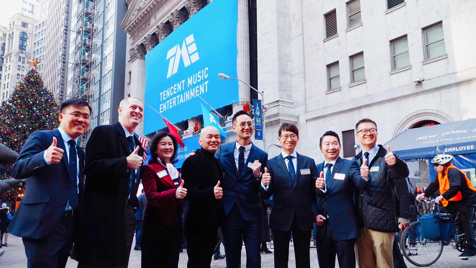 騰訊音樂管理層今天出席於紐約交易所舉行的上市敲鐘儀式。