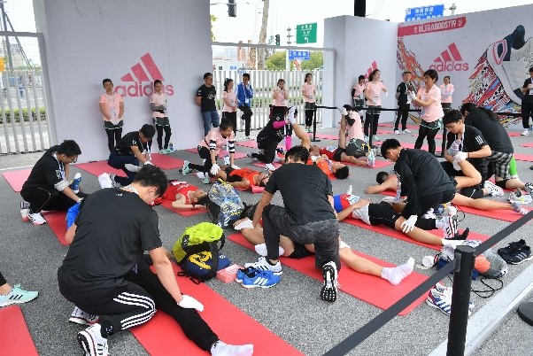 阿迪达斯在赛后服务区为跑者提供多种服务