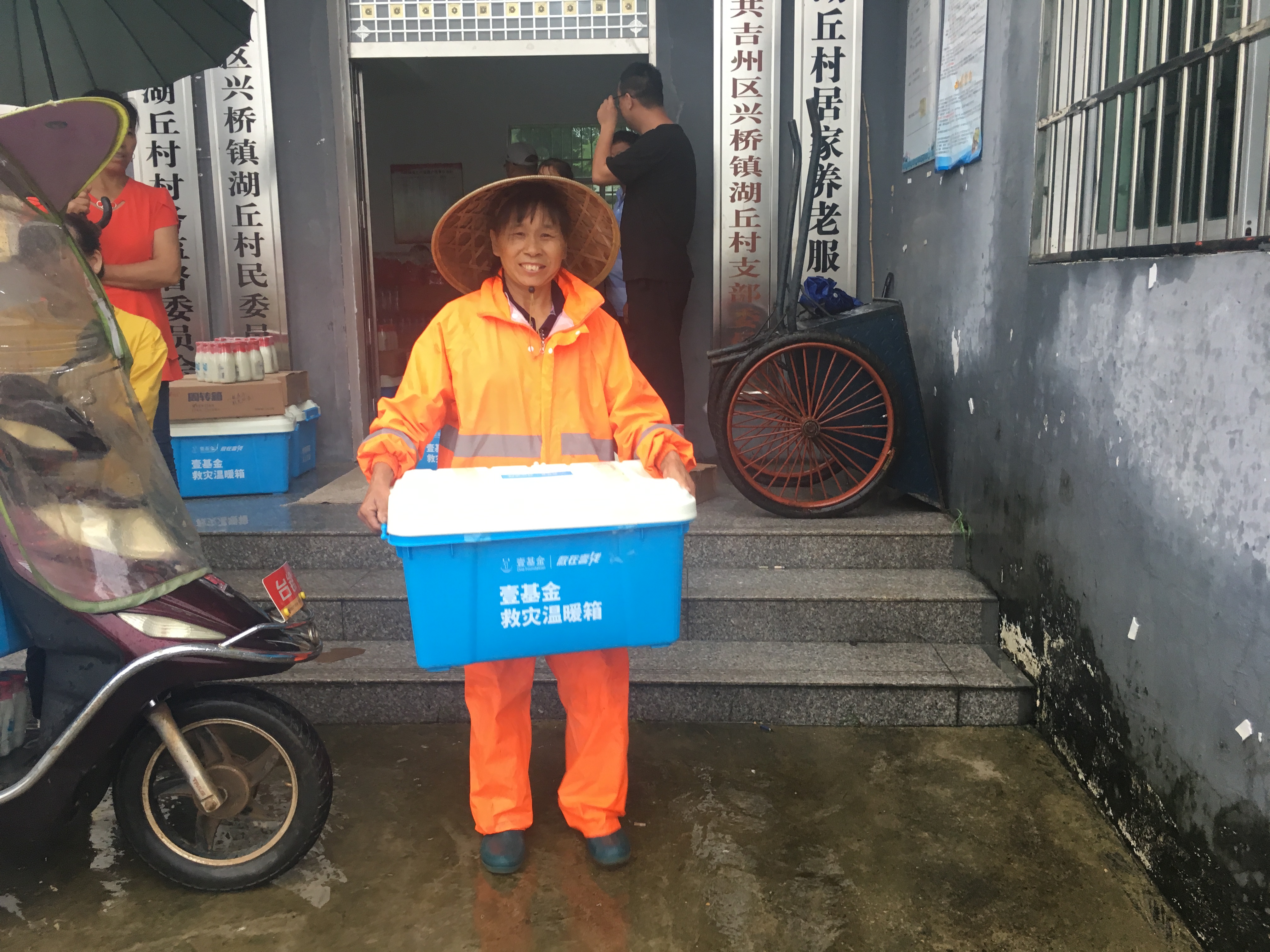 江西吉州区兴桥镇湖丘村的村民收到救灾温暖箱