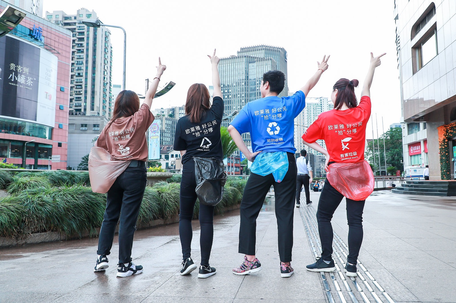 图片说明 欧家员工在企业公民日十周年之际化身“行走的垃圾桶”,身体力行宣传垃圾分类知识