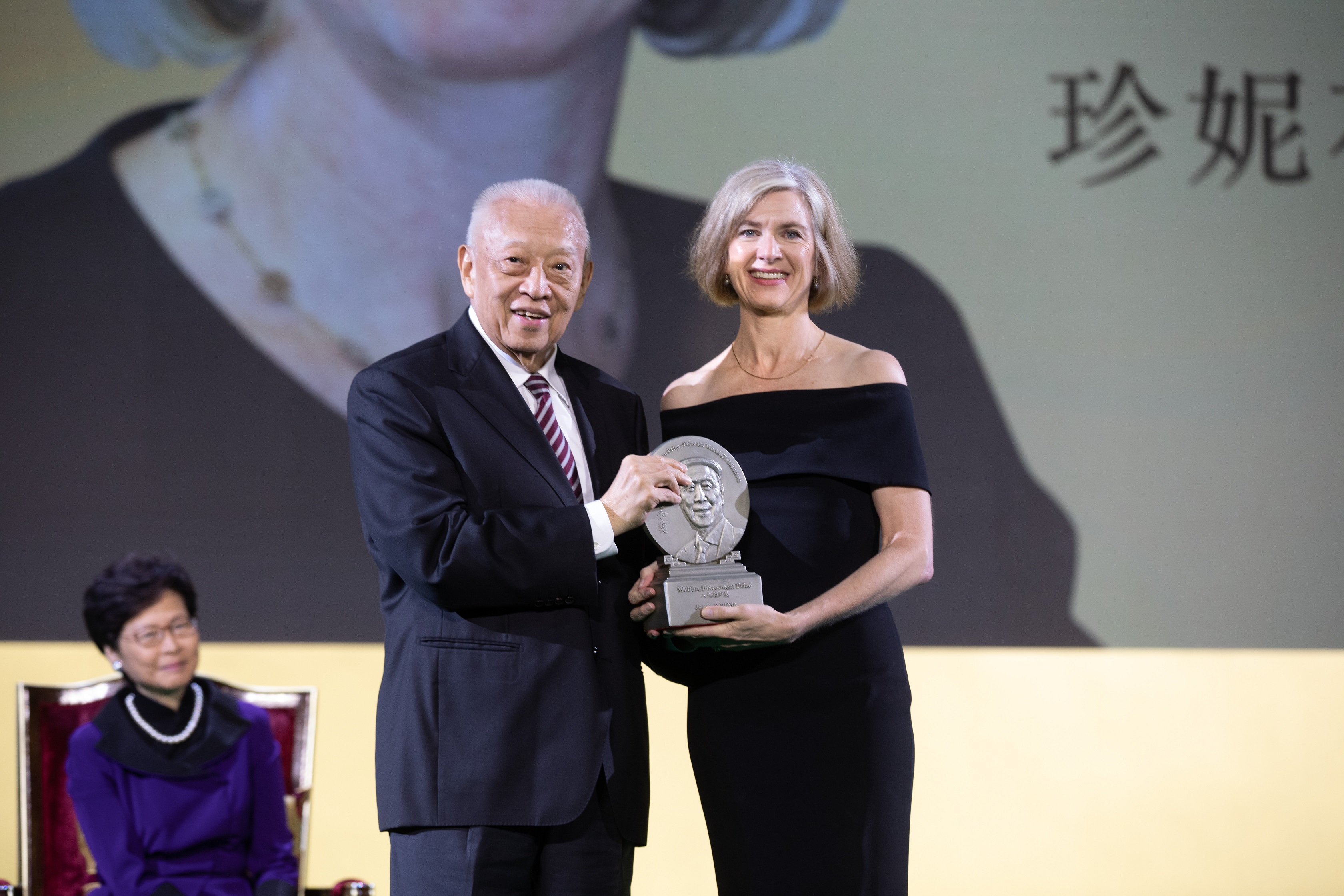 | Caption | Mr Tung Chee-hwa presents the Welfare Betterment Prize to Dr Jennifer A. Doudna, co-inventor of CRISPR-Cas9. |