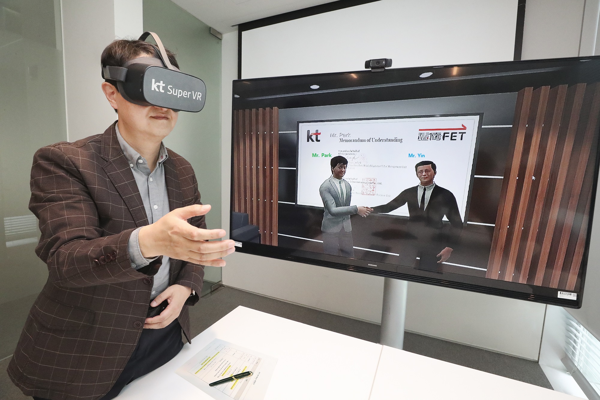 | Caption | KT’s Senior Vice President Park Hyun-Jin is signing a memorandum of understanding (MOU) with his FET counterpart T.Y. Yin for collaboration in 5G services and digital content development via KT’s virtual meeting platform “Engage”. |