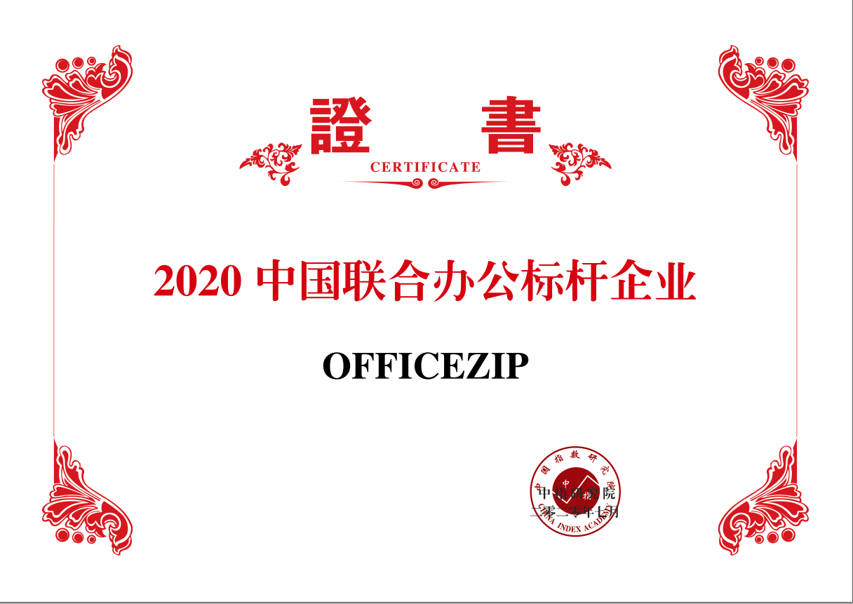 | 图片说明 | OFFICEZIP荣获“2020中国联合办公运营标杆TOP5” |