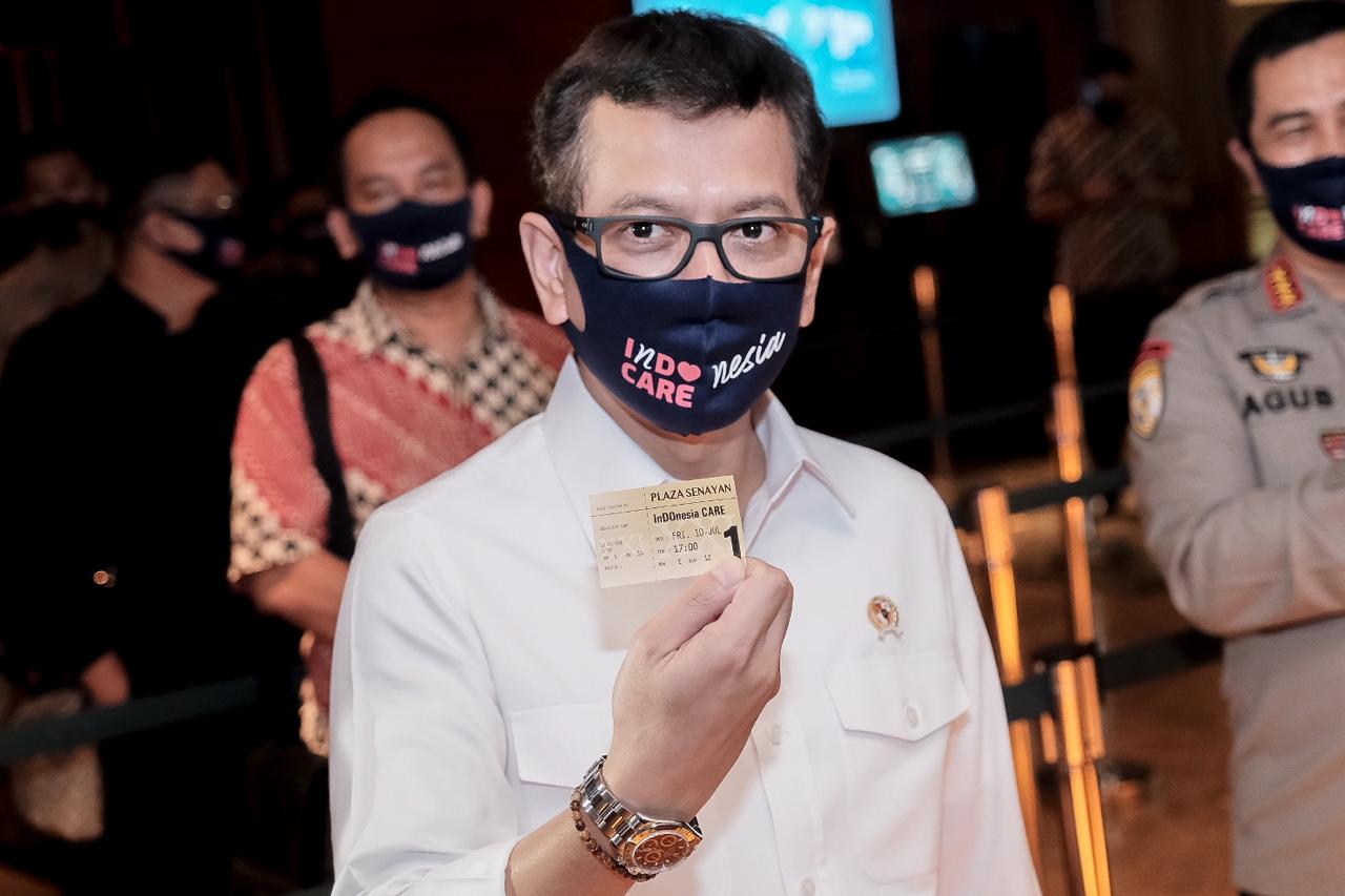| 圖片說明 | 印尼旅遊與創意經濟部部長/旅遊與創意經濟局局長維斯努達瑪-古素班迪奧(Wishnutama Kusubandio)來到雅加達Senayan廣場的XXI Studio電影院 |